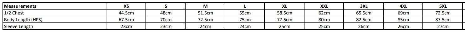 | XS | S | M | L | XL | 2XL | 3XL | 4XL | 5XL | |
